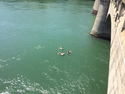 Hier lassen sich viele Leute mit einem wasserdichten Sack für die Kleidung den Rhein ein Stück hinunter treiben.