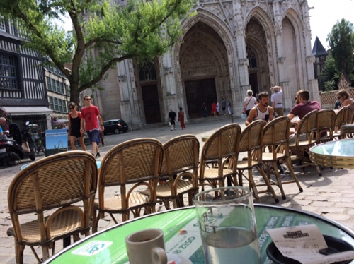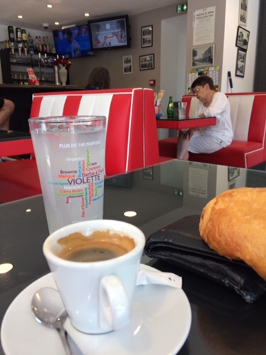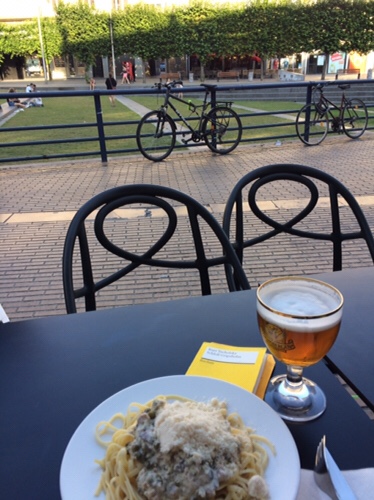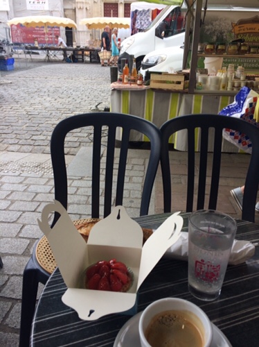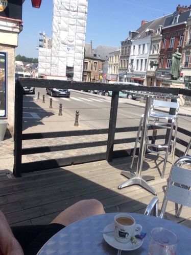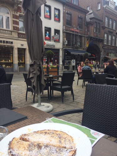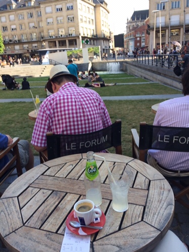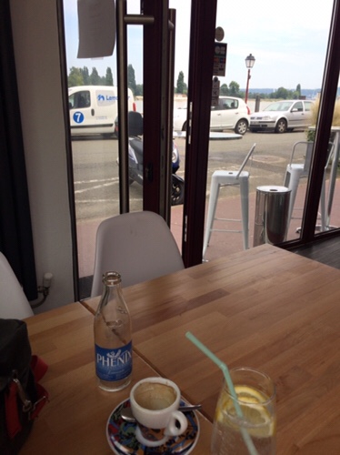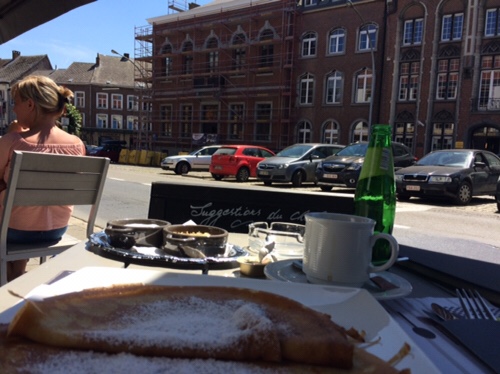 14:50 Uhr – Zitronenlimonade und Kaffee im Les Must in Namur am Theater. Gleich kommen noch die Crêpes. Leider war Tiramisu aus.