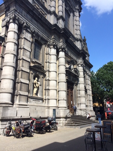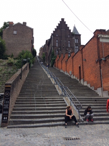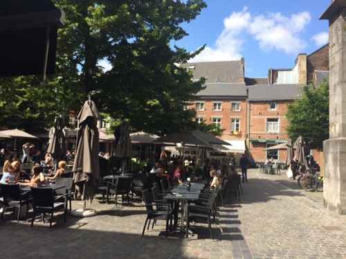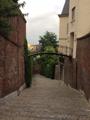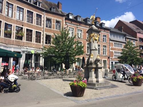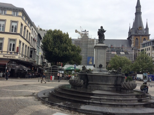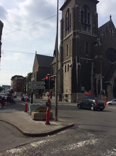 Hier in Lüttich dominiert, wie in der Aachener Altstadt, der Blaustein. Auch die vielen roten Anstriche und die Gliederung der Fassaden erinnern mich sehr an Aachen.