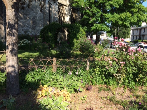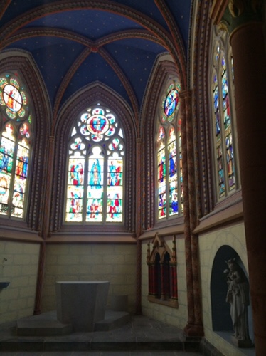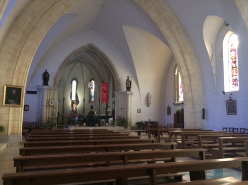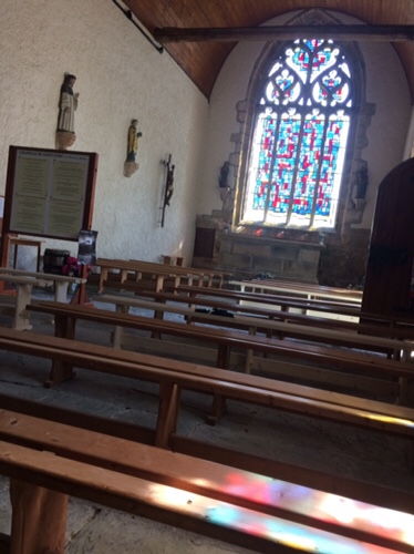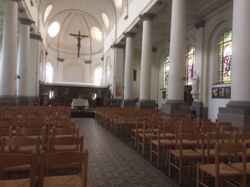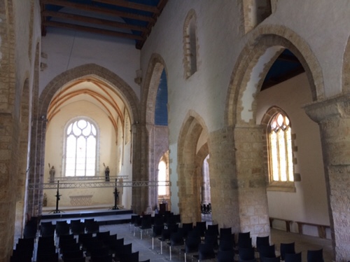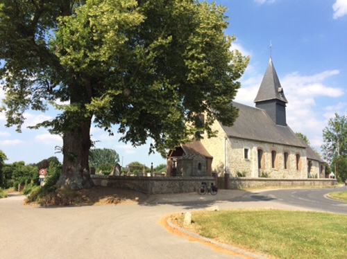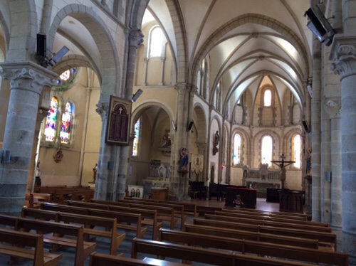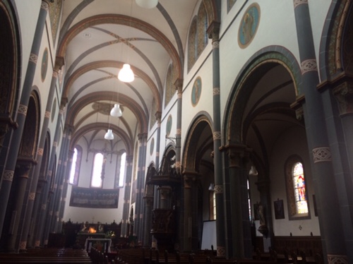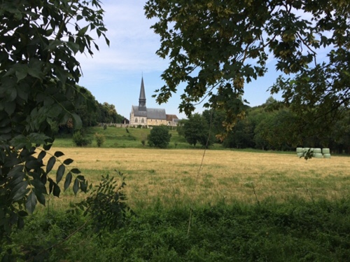 Eine schöne neo-romanische Kirche haben sie hier. Alle paar Monate gibt es ein Taizé-Gebet. Die Jugendband probt gerade sehr lautstark. Um Ruhe zu finden suche ich mir jetzt besser eine Bank am Waldrand.