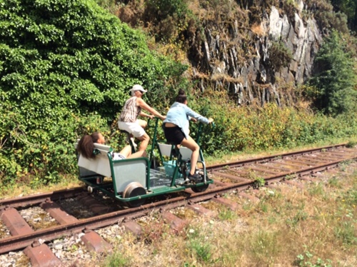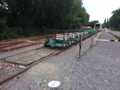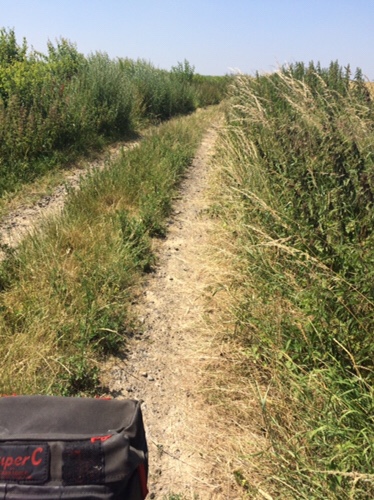 11:40 Uhr – Auf der sehr holprigen Bahntrasse, einfach zu viele Steine, mit dem Mountainbike sicher super.