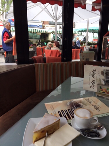 15:00 Uhr – Nach einer netten Quasselrunde musste sie zurück. Ich genehmige mir in der Eisdiele um die Ecke noch einen Cappuccino.