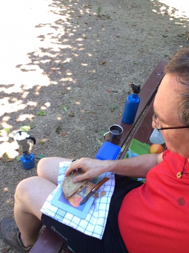 Pause war gut, aber mit einer nervig lauten Familie, die sich mit auf die Bank quetschte. Jetzt weiter.