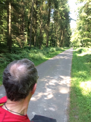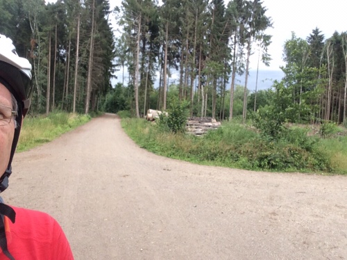 15:30 Uhr – Im nördlichen Kottenforst. Die Temperatur ist ideal. Der relativ kurze Anstieg mit 5 – 8% war gut zu bewältigen, ich hatte sogar leichten Rückenwind. Allerdings spüre ich meine rechte Achillesferse, und ich lockere sie immer wieder beim Pedalieren.