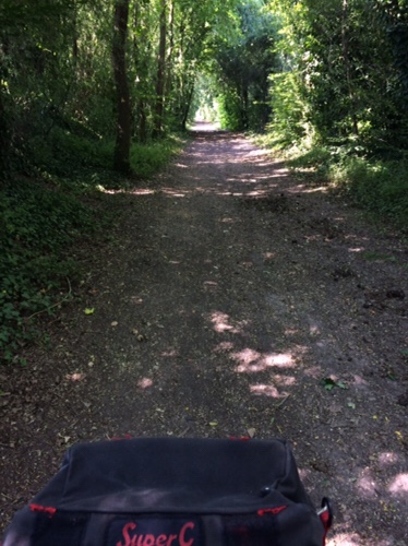 10:05 Uhr – Der Bahnradweg ist hier sehr gut in Schuss. Er sollte mich gemütlich bis Quimper bringen. Angenehme 19° C im Schatten, keine Autos, keine Löcher in der Straße, alles bestens. Dafür verzichte ich auch mal auf Aussicht.