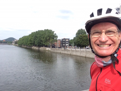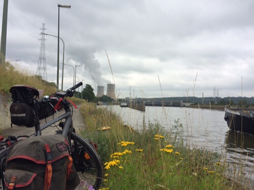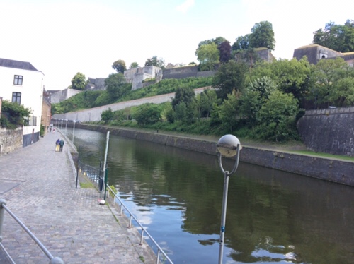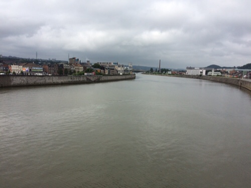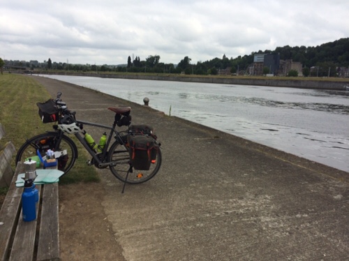 Gerade überholt mich mal wieder die Jaldi, ein Schüttgutfrachter, der durch die Schleusen ausgebremst wird. So hole ich ihn nach jeder Pause wieder ein. Noch 13 km bis Namur. Dort gibt es Café-Kaffee.