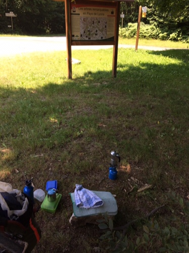 13:30 Uhr – Hunger! Nicht gerade ruhig am Waldrand, eher am stark befahrenen Kreisverkehr, aber der Kaffee kocht und die Bank ist bequem. Mittlerweile ist die Temperatur auf fast 22°C gestiegen! Und drei Tage ohne Regen ist ein sehr guter Start. Wenn ich da an 2016 denke…