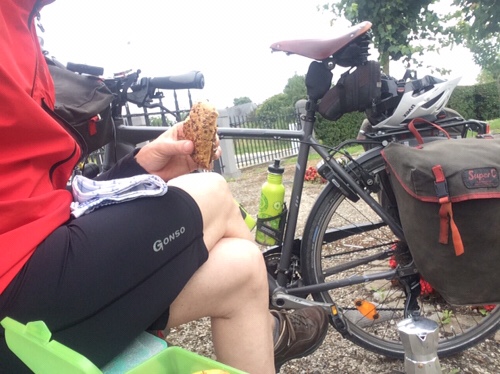 9:30 Uhr – Nur 14° C, ich habe mir die Fleecejacke angezogen. Der Wind ist kalt, kommt von vorne. Bis um acht strahlte noch die Sonne vom blauen Himmel. Sonst ist alles in Ordnung, ich fahre in aller Ruhe. Heute sind es auch nur etwa 60km.