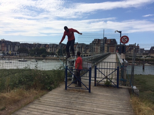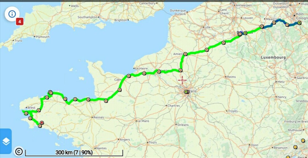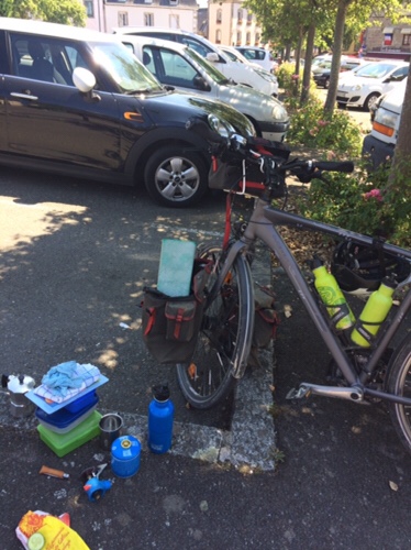 Ich wurde im Gewühl von einem älteren Mann angesprochen, der meine Ausrüstung bewunderte und mir schließlich mindestens zehn Mal bewundernd auf die Schultern klopfte, als ich sagte, dass ich auf dem Weg in die Bretagne sei. Ich sei stark und mutig und spreche akzentfrei Französisch. Hm, ob er schon etwas getrunken hatte? Es war sehr rührend.