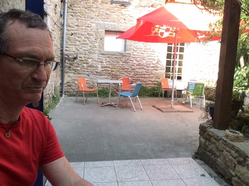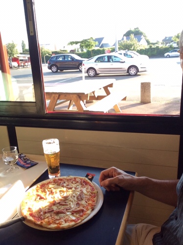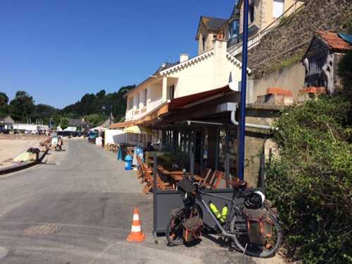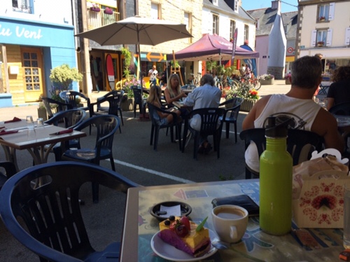 12:05 Uhr – Im Café de la Place in Camaret-sur-Mer. Ich bin auf die D55 gewechselt und es ging richtig ab.
