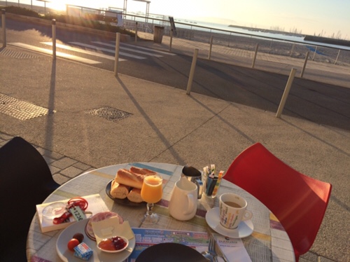 9:00 Uhr – Bereit zur Abfahrt. Das Frühstück war mit 16€ teuer, aber sehr üppig. Mit diesmal geschlossenem Vorhang habe ich sehr gut geschlafen.