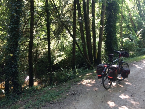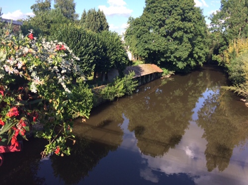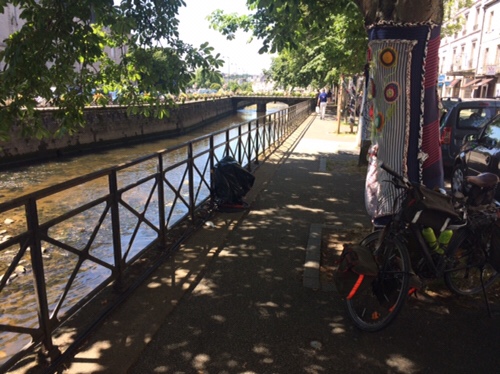 Umkleidete Bäume am Odet, einem der drei Flüsse in Quimper. Jetzt suche ich eine schattige Bank.