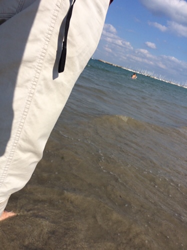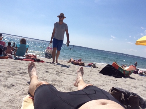 Für eine halbe Stunde auf dem Handtuch im groben Quarzsand. Es geht ein angenehmer Wind vom Meer.