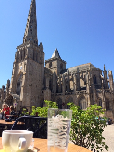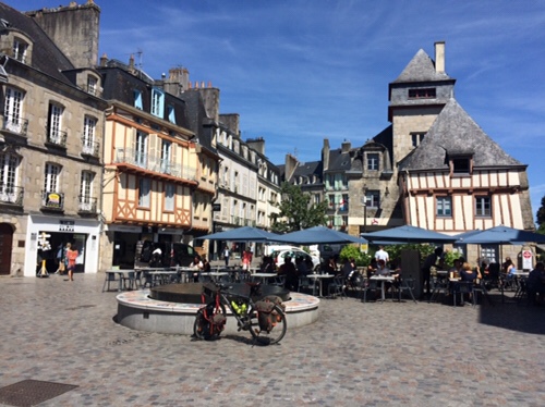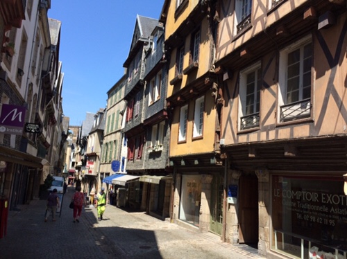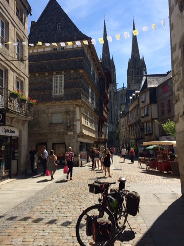 11:25 Uhr – Am Proxi in Quimper. Das letzte Stück auf der Landstraße lief auch zügig. Es waren 23 km bis hierher. Jetzt suche ich ein gemütliches Plätzchen in der Innenstadt.