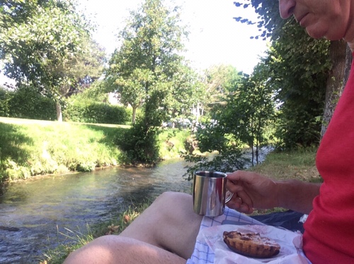 Der Kaffee tut richtig gut. Die Tasse fülle ich mit kaltem Wasser auf, dann ist die Temperatur genau richtig.