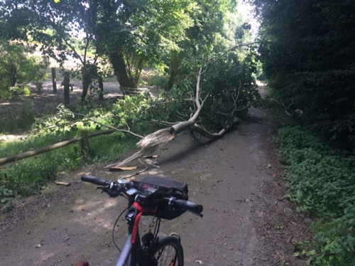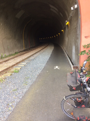 14:25 Uhr – Weiter geht es auf einer alten Bahntrasse. Ich bin immer wieder überrascht, was dieses Navigationsprogramm mir serviert.