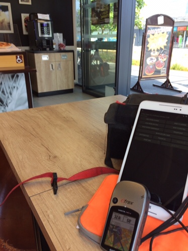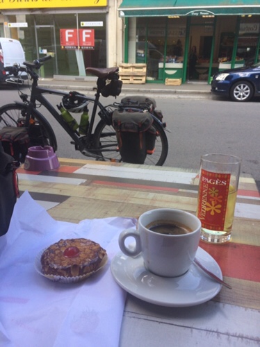 16:40 Uhr – Gerade endlich von der großen Straße abgebogen. Bin dabei auch noch auf 120 m gestiegen. Kein Wunder, dass ich platt bin. Jetzt ein Café!