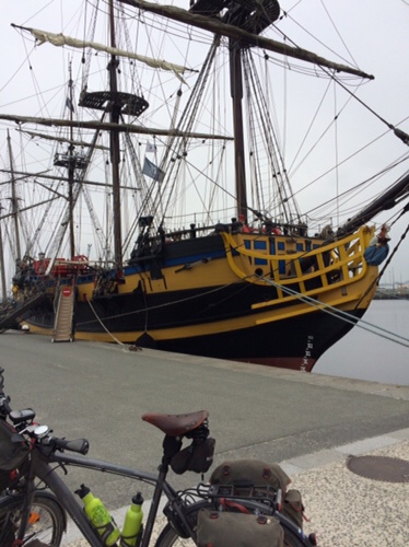 9:40 Uhr – Später Start, aber heute nur 50 km. Ein altes Feuerschiff liegt unten im Hafen.