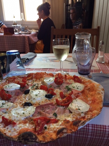 Sehr schön, aber keine Pizzeria. Die habe ich dann auf dem Weg hinüber zur Hafenseite am Busbahnhof gefunden. War sehr lecker. Nur Kaffee zum Nachtisch, ich suche mir noch ein Eis.