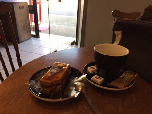 11 Uhr – Mir ist echt kalt! Ich wärme mich jetzt im Café Dolce Vita in Düren auf. Es gibt Cappuccino und Apfelkuchen.