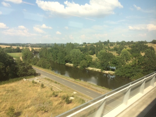 17:50 Uhr – Hinter Rennes beginnt die Neubaustrecke. Jetzt brettern wir mit 300 km/h durch die Weiden und die Weizenfelder.