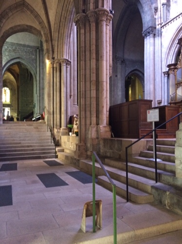11:40 Uhr – die Stiftskirche Notre-Dames vor der Festung von Huy. Leider wegen Renovierung geschlossen.