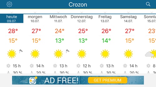 Heute ist es bewölkt, windig und mit unter 20° C eher kühl. Die Wettervorhersage ist gut und verspricht trockenes Wetter und steigende Temperaturen.