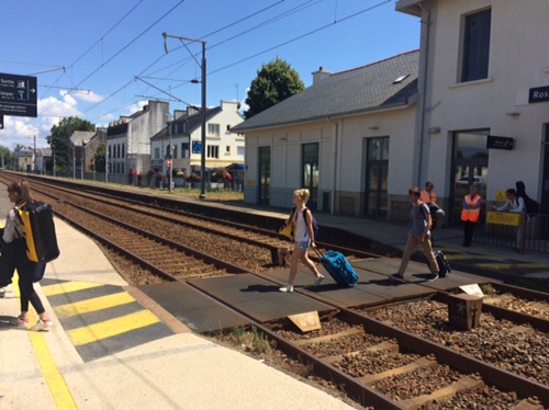 13:35 Uhr – Am kleinen Bahnhof von Rosporden. Der TGV fährt tatsächlich hier ab, man muss zu Fuß über die Gleise, sagte die freundliche Dame von der SNCF.