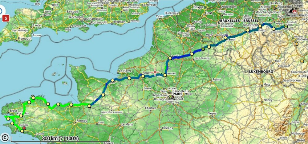 Heute habe ich Freunde, Heimat und Muttersprache hinter mir gelassen und wurde sehr, sehr freundlich von den Belgiern begrüßt. Das tut gut und gibt viel Kraft für die nächsten Tage, die ich alleine unterwegs sein werde. – Natürlich telefonieren ich immer wieder lange mit Zuhause, das ist die Grundlage von allem!