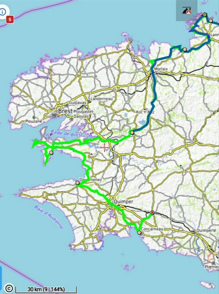 So lange Tage sind sehr anstrengend. Es ist ok, weil ich viel von der Crozon sehen wollte. Bei der Planung einer nächsten Tour, sollte es sie geben, werde ich wieder auf weniger Kilometer pro Tag gehen.