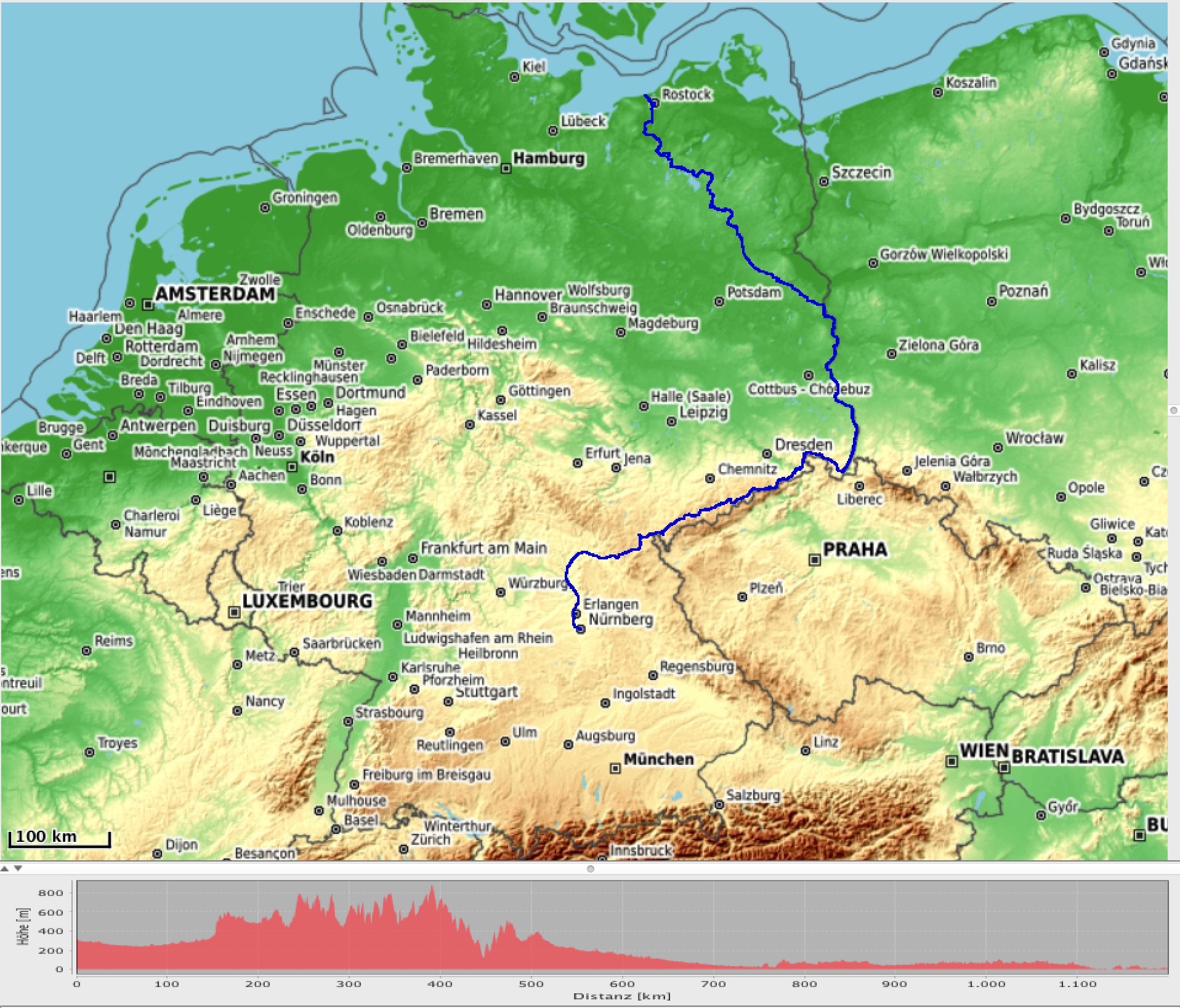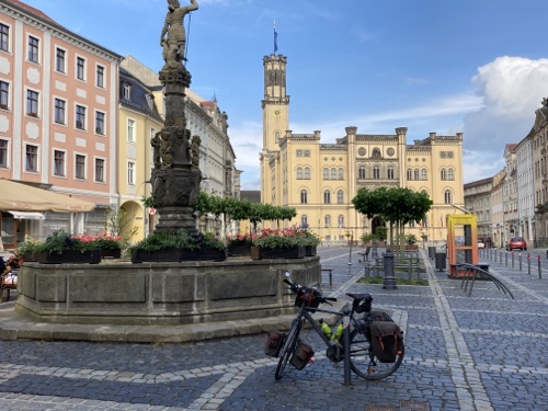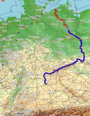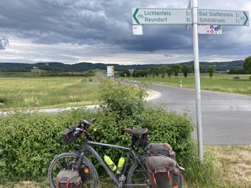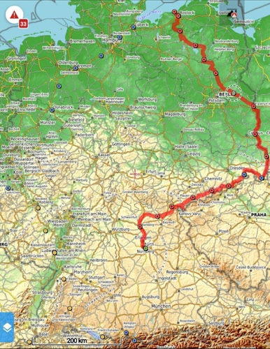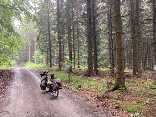 Von Nürnberg aus soll es über Bamberg und Kulmbach nach Hof gehen. Mich lockt das Erzgebirge, dessen Verlauf ich wegen Corona auf der deutschen Seite folge. Der Kammweg und der tschechische R23 kommen derzeit leider nicht in Frage. Ich treffe in Bad Schandau auf die Elbe und umfahre den tschechischen Zipfel in der sächsischen Schweiz und erreiche in Zittau die Neiße. Von dort folge ich dem Fluss durch die Lausitz, fahre die Oder entlang bis Frankfurt/Oder und quere dann in die Mecklenburgischen Seenplatte. Der D4 führt mich hindurch bis Rostock. Am radfreien Tag in Elmenhorst hoffe ich auf gutes Wetter zum Baden in der Ostsee.
