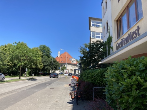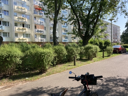 10.02 Uhr – Lütten Klein, liegt neben Groß-Klein. Hier stehen sicher über zwanzig dieser riesigen Plattenbauten in der Rostocker Vorstadt.