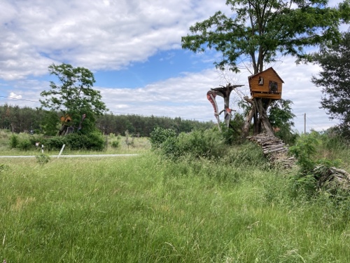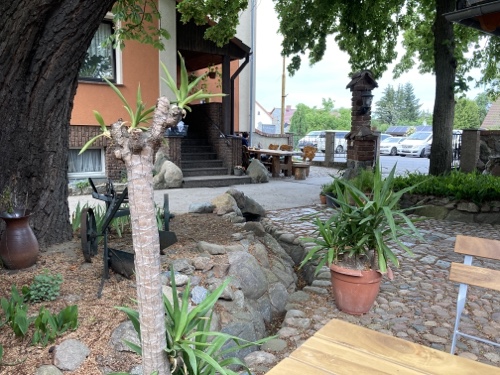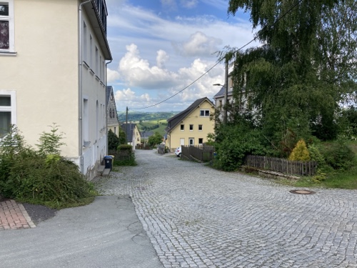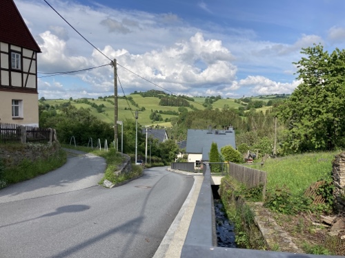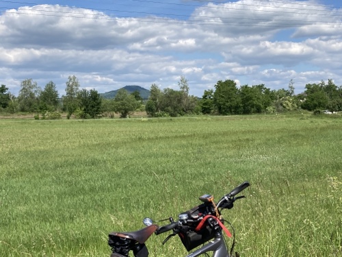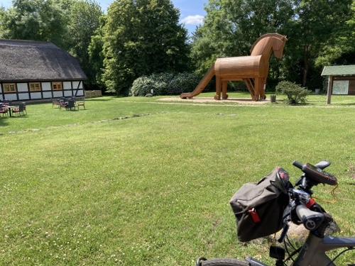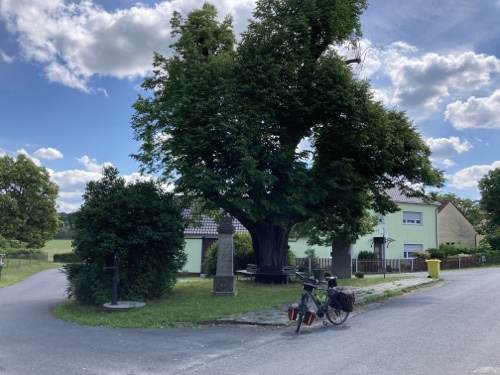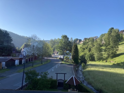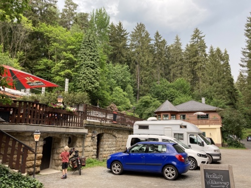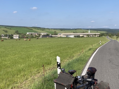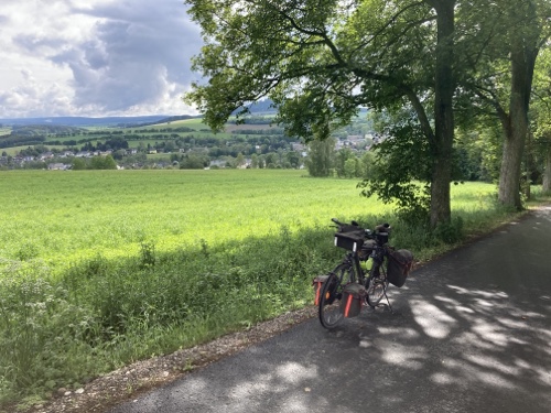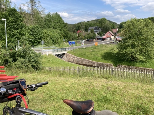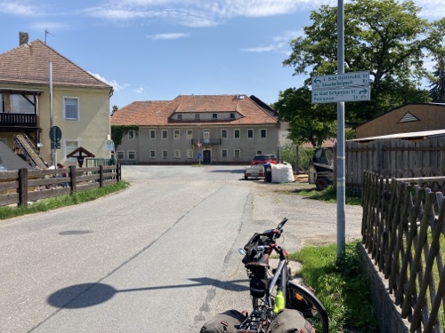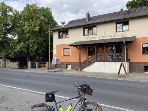 Im Ort gibt es laut Google Maps eine Gaststätte. Dorthin mache ich mich jetzt mit dem Rad auf. Falls sie mir nicht gefällt, suche ich weiter. Zum Sonnenuntergang könnte ich wieder zur Wilhelmshöhe fahren. Mal sehen.