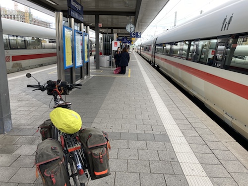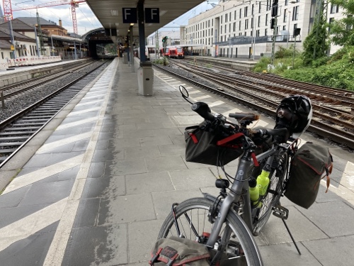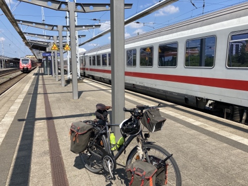 13:41 Uhr – Habe den zwei in Frankfurt zugestiegenen Radreisenden in Würzburg beim Aussteigen geholfen. Sie haben sich nett bedankt, und im Vorbeigehen zeigte mir ein junger Mann einen Daumen hoch. Heute ist wirklich ein Freundlichkeitstag!!
