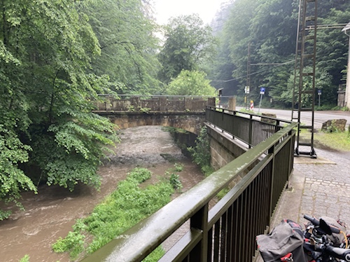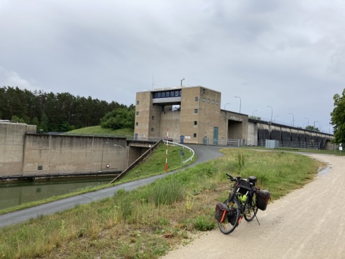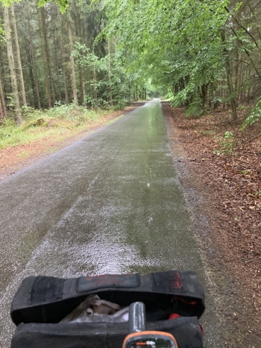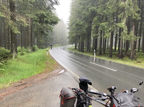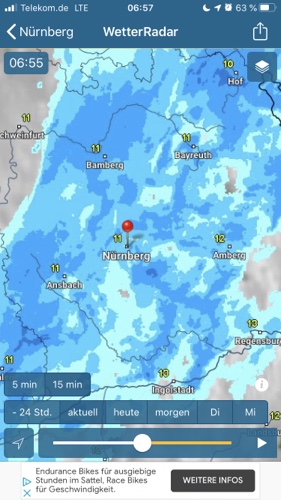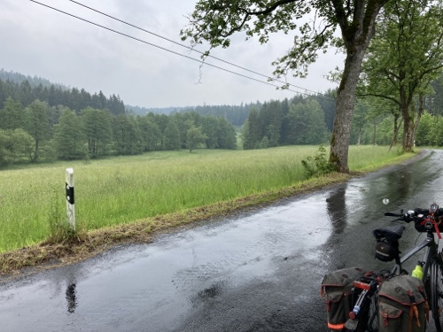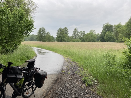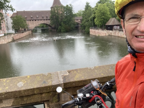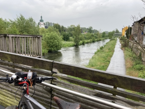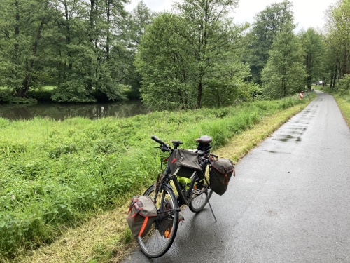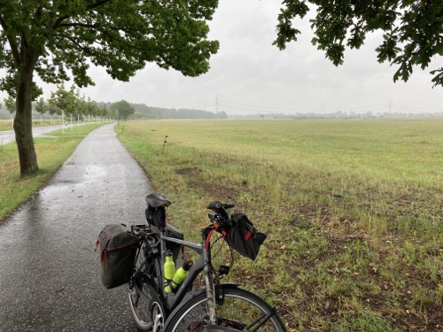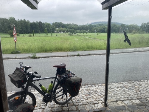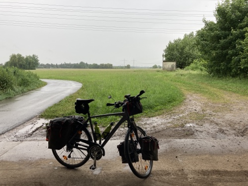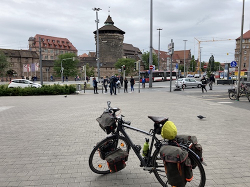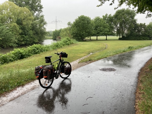 So ein Regen! Habe gleich in Nürnberg ein junges Paar mit Rucksäcken auf dem Mountainbike getroffen. Sie fahren auch heute bis Bamberg.