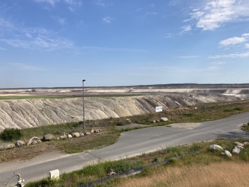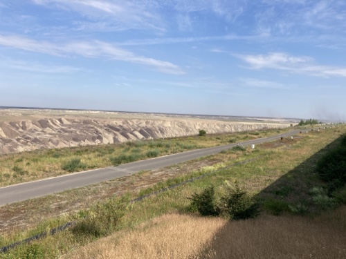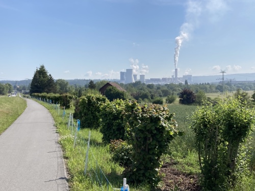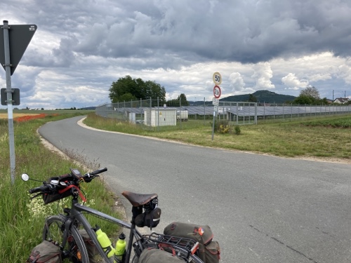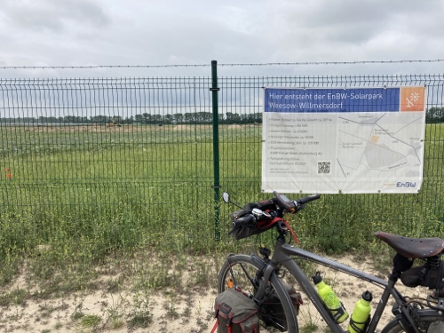 Ich verfolge die Strecke auf der Karte von Komoot und lese nebenbei Artikel in Wikipedia zu Dingen, die mir an der Strecke auffallen, zum Beispiel die großen Solarparks.