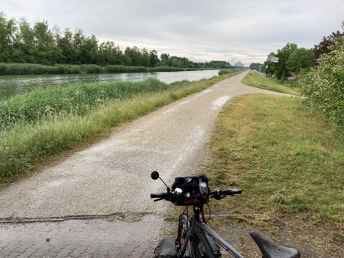 Es sind sehr, sehr viele Radreisende jeden Alters unterwegs. Junge Leute mit Minimalgepäck und unvorstellbaren Tagesetappen, Familien, Paare und Gruppen. Das schafft schnell Verbindung, aber auch Gedränge, wenn es voll wird. Dem weiche ich dann lieber aus.