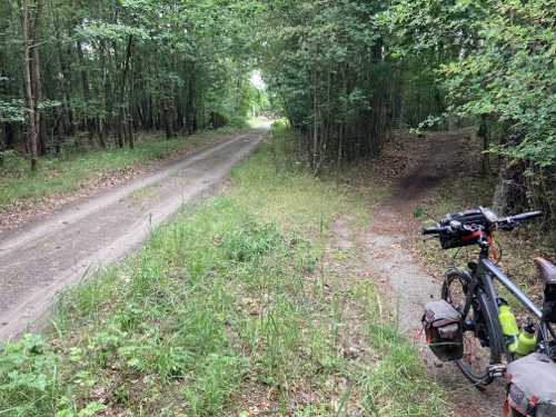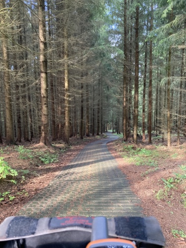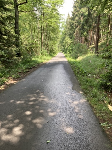 15.23 Uhr – Mal ein Stück Waldweg. Nur noch 28 Kilometer
