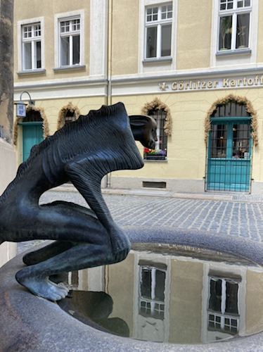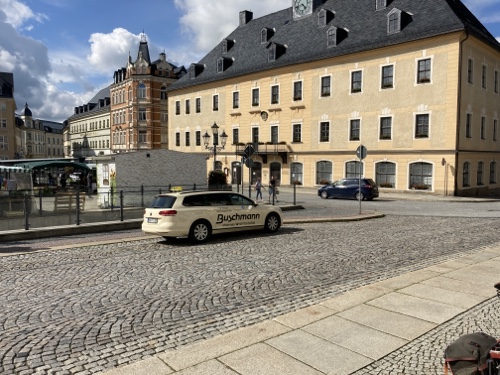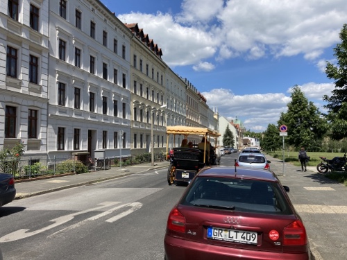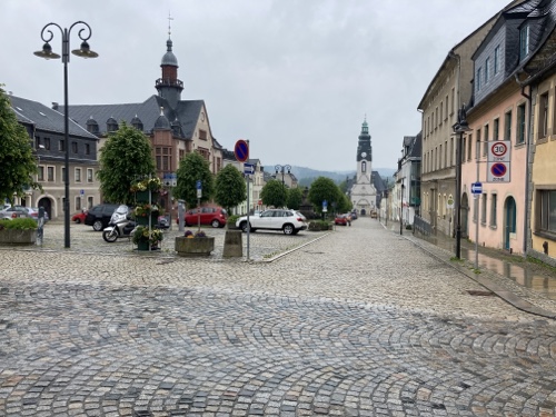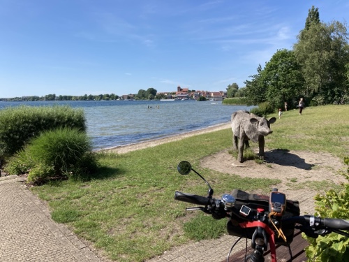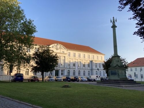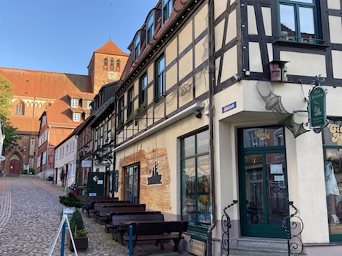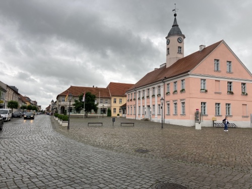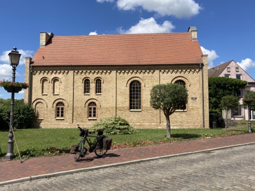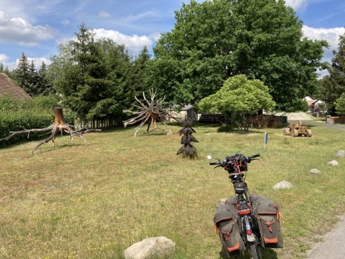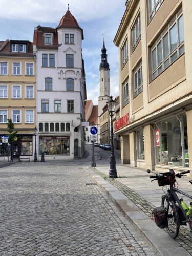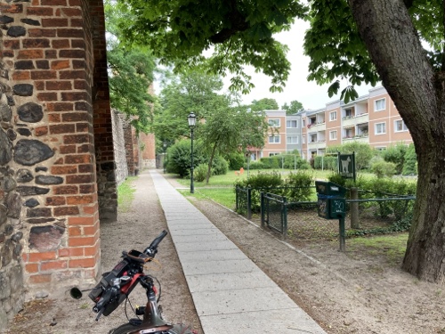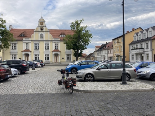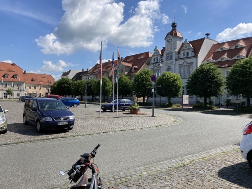 Touristische Highlights habe ich mir am Vorabend beim Studium der Karte auf dem kleinen Tablet parallel in Wikipedia herausgesucht. Ich finde es sehr interessant, ein paar Details zu der Gegend, Stadt oder Sehenswürdigkeit zu lesen und sie dem Blog hinzufügen. Wenn ich mich über die Städte informiert habe, bin ich zwangsläufig an den Angaben zur Zusammensetzung des Stadtparlaments vorbeigekommen. Es hat mir immer eine gewisse Beklemmung verursacht, wenn ich gelesen habe, wie hoch der AfD-Anteil in den meisten besuchten Städten in Sachsen, Brandenburg und Mecklenburg-Vorpommern ist. Das passt so gar nicht zu der ebenfalls vielfältig sichtbaren Erinnerung an die Opfer des Nationalsozialismus.