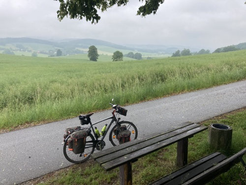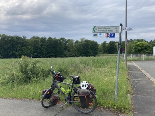 Das Fichtelgebirge liegt östlich von Kulmbach. Ich fahre morgen nördlich davon durch den Frankenwald nach Hof. Es wird also auch etwas auf und ab gehen.