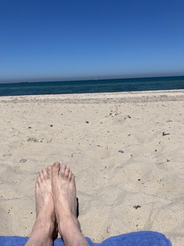 13.42 Uhr – Ich habe fast drei Stunden am Strand gelegen, Ulla Hahn gelesen, meditiert, gedöst.