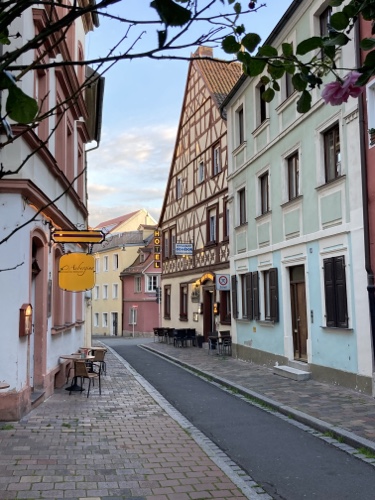 22.35 Uhr – Nach geführtem Stadtrundgang, Abendessen und Absacker bin ich zurück im Hotel. Das war ein sehr schöner Erzählnachmittag und Tourauftakt. Es war recht frisch, und ich bin froh, dass ich den warmen Pulli zusätzlich eingepackt habe. Für morgen Vormittag ist in Nürnberg viel Regen angesagt, aber schon für Bamberg nicht mehr. Ich lasse mich überraschen und freue mich auf die erste Etappe und Bamberg.