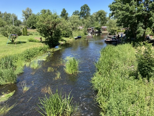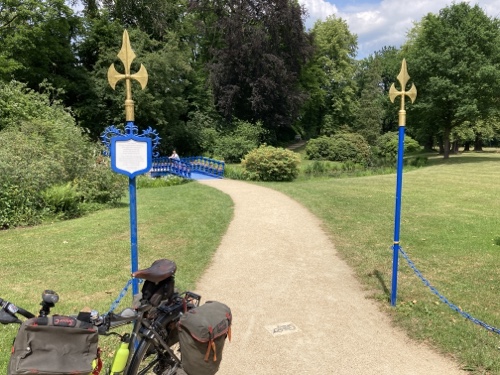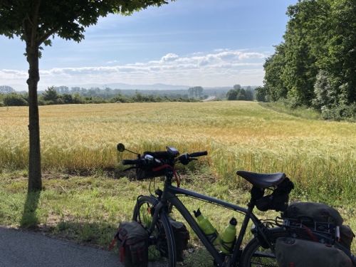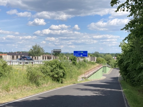 Hier könnte ich alle drei Minuten ein Foto machen. Das Wetter ist wunderbar. Ich gebe zu, die dunklen Wolken und der Regen am Donnerstag gepaart mit dem Reisefieber hat doch sehr auf meine Stimmung geschlagen. Sie beginnt sich langsam zu lösen und ich mich zu freuen. Schon gleich am Bahnhof sprach mich eine Frau an, wo es hingehe und ob ich vom ADFC sei, wegen des Aufklebers. Eine zweite wollte schnell ein Foto für mich machen, obwohl schon ihr Zug einfuhr.
