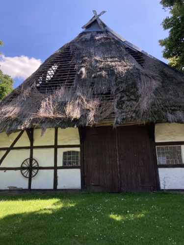 9.54 Uhr – Lichtenhagen – Diese Reethäuser sehen gut gepflegt aus.