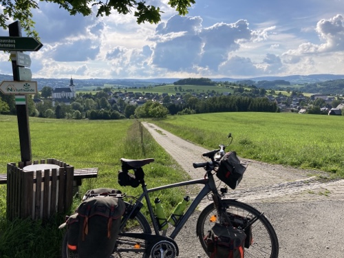 Nach den beiden sehr langen Heimreisen von den Solo-Touren in 2018 und 2019 möchte ich es in diesem Jahr einfacher haben: Aus verschiedenen D-Routen und dem Grenzverlauf zu Tschechien im Erzgebirge habe ich mir die Route der diesjährigen dreiwöchigen Solotour gebastelt. Sie startet in Nürnberg. Dort war ich 2016 auf dem Weg zum Königssee. Und es gibt durchgehende Züge mit Fahrradmitnahme.