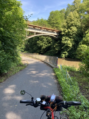 10:31 Uhr – Wunderbarer Weg, sehr gut ausgeschildert. Überhaupt ist die Radinfrastruktur in Bamberg sehr gut. Ich habe beim Reinfahren meinen ersten Grünen Radfahrer-Pfeil gesehen.