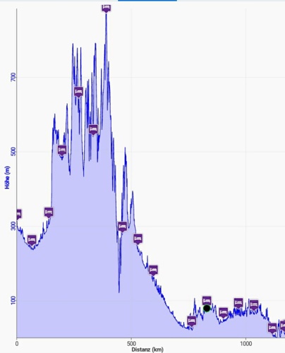 Hier noch eben die aktuelle Übersichtskarte über die gesamte Strecke von 1.263 Kilometern.