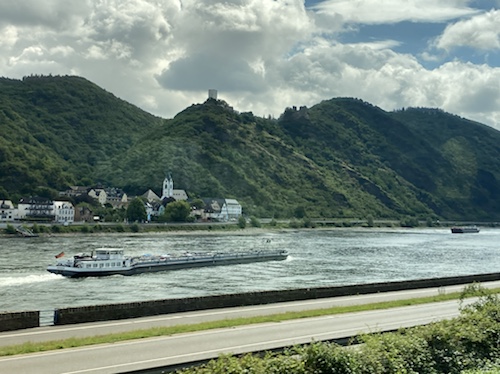 Meine Reservierung im fast leeren Wagen ist neben einem anderen Reisenden! Wir waren uns einig: Das ist Quatsch. Jetzt sitze ich sehr schön am Fenster auf der Rheinseite und lasse den herrlichen Fluss an mir vorbeiziehen.