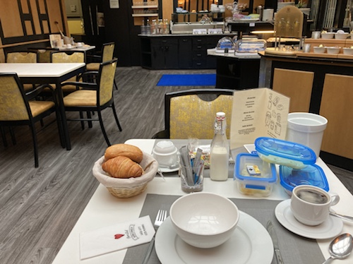 8.03 Uhr – Die junge Bedienung tat sehr überrascht, als ich in den Frühstücksraum wollte. Mal sehen, was es gibt.