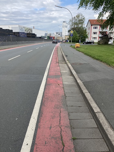 16:54 Uhr – Sehr kreativ aber gefährlich, den Rinnstein zum Radweg zu machen.